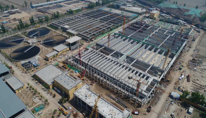 太原市汾東污水處理廠一期工程建設(shè)項(xiàng)目,位于太原市小店區(qū)劉家堡鄉(xiāng)東里解村南、瀟河北側(cè),占地面積205.65畝,地上式布置,設(shè)計(jì)規(guī)模為35萬(wàn)噸/日,服務(wù)范圍包括汾東以東、南環(huán)過(guò)境高速以南的太原市界內(nèi)區(qū)域。工程分兩步建設(shè)。一期一步工程,設(shè)計(jì)規(guī)模15萬(wàn)噸/日,AA0+NCE+深度處理工藝,總投資約4.4億元,2017年底開工建設(shè),2019年1月1日通水調(diào)試,2019年4月30日建成投運(yùn)。一期二步工程,設(shè)計(jì)規(guī)模20萬(wàn)噸/日,MBR處理工藝,總投資約6.56億元,2020年12月開工建設(shè),2020年5月中旬通水運(yùn)行,2020年5月31日出水,出水水質(zhì)已達(dá)標(biāo),目前正在準(zhǔn)備進(jìn)行初步性能測(cè)試及啟動(dòng)商業(yè)試運(yùn)行工作。